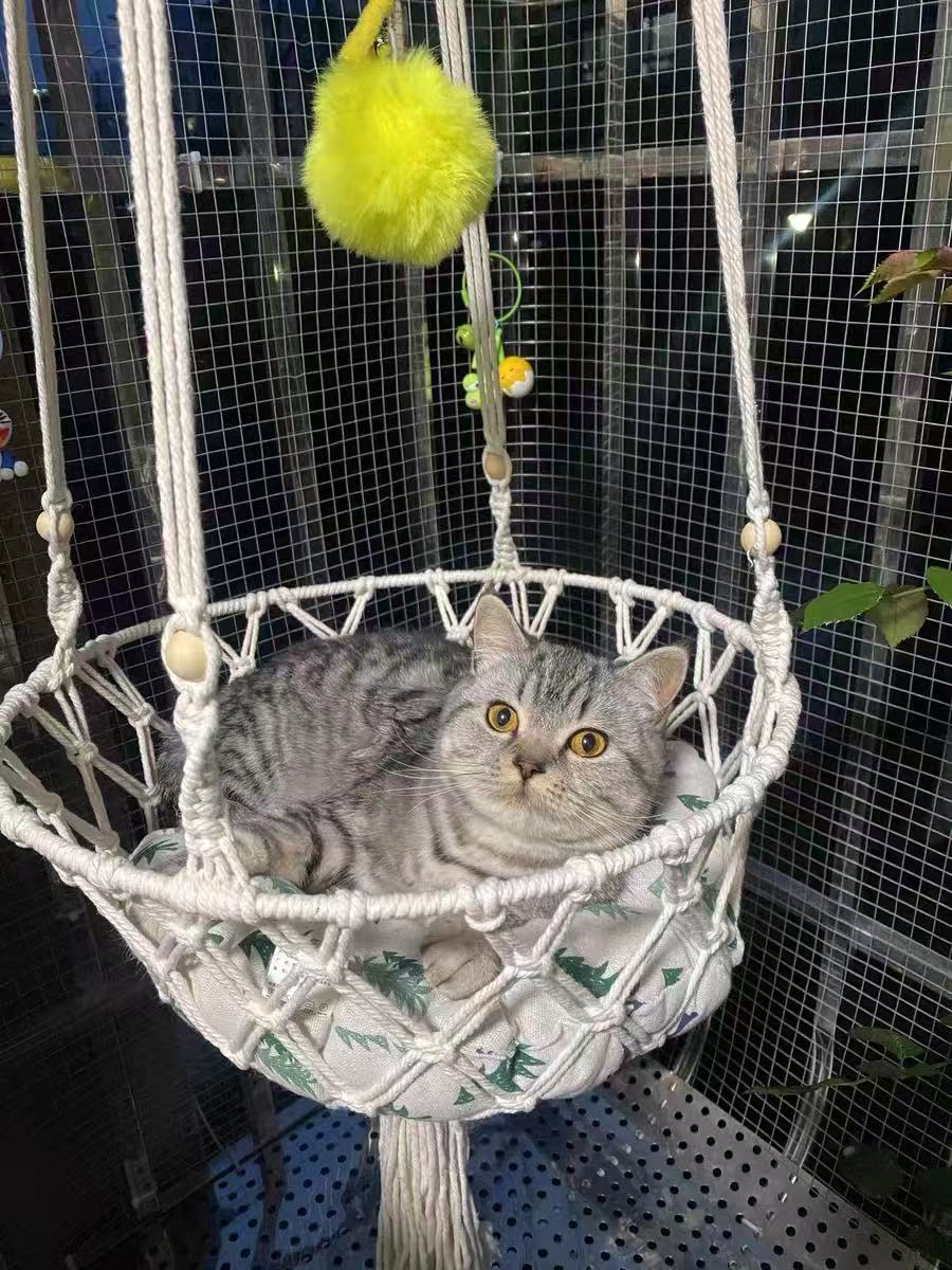 A cozy, handwoven boho cat hammock that hangs securely in any room—perfect for your feline to nap, lounge, and watch the world from above!