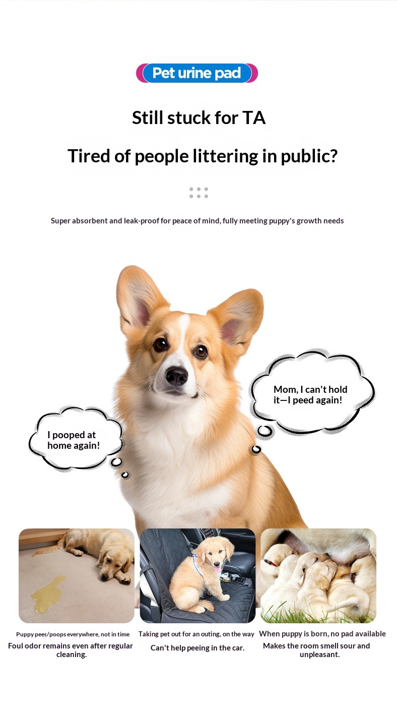 Meet our #1 Best-Selling Pet Pee Pad – the thickest, most absorbent solution for accidents, training, travel, and senior dogs!