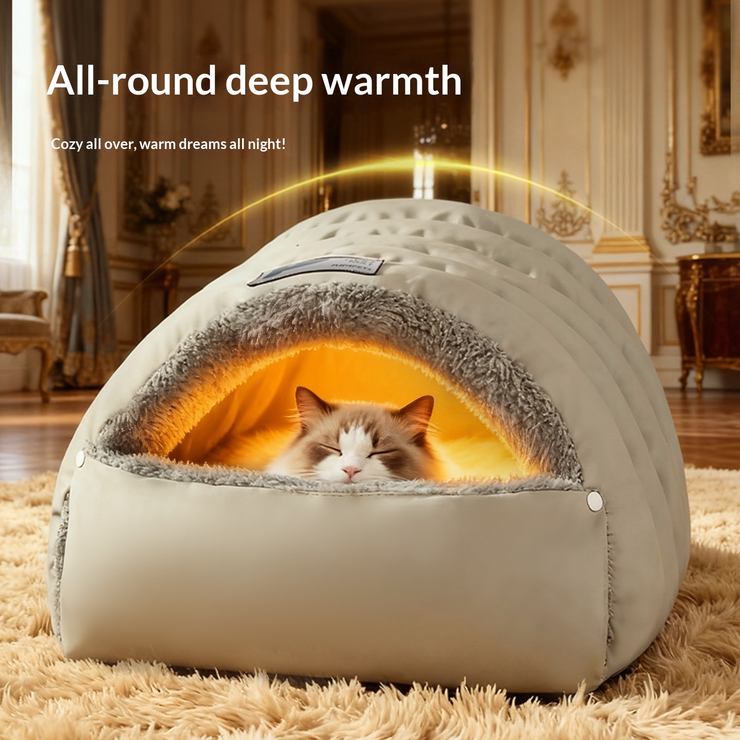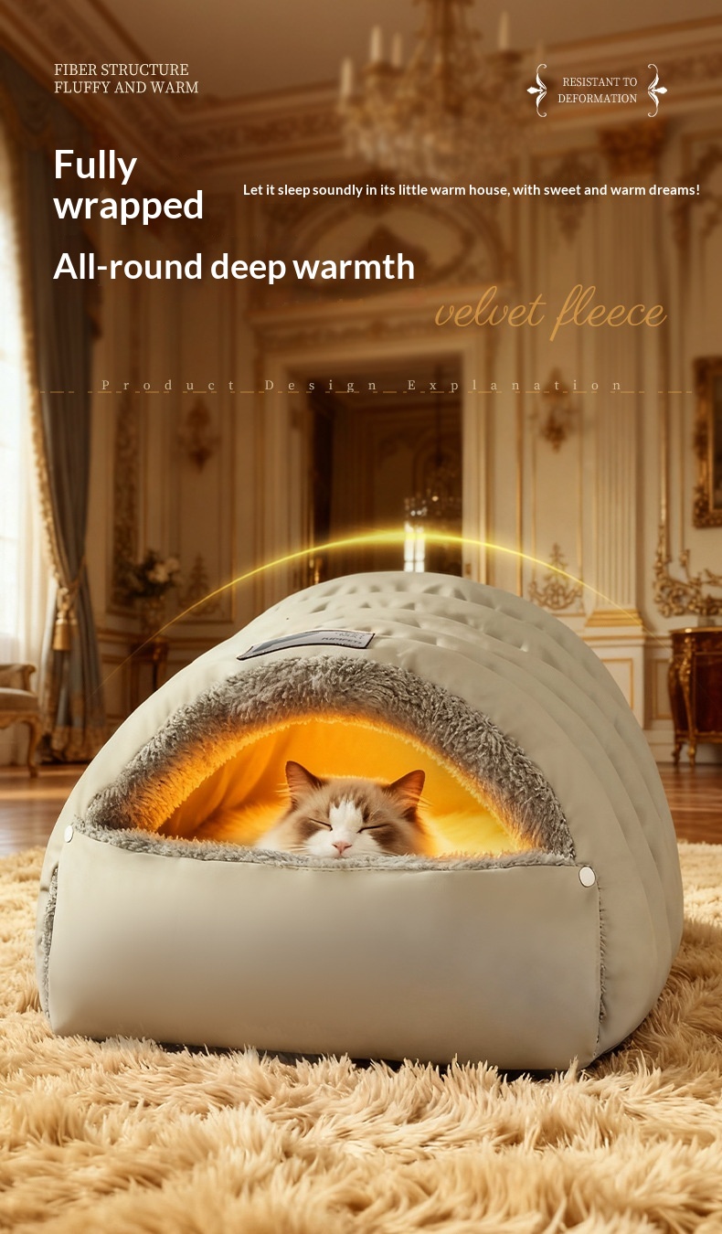 "Cozy Cave. Waterproof Shell. Big Enough for Cats and Small Dogs! 🐱🐶💤