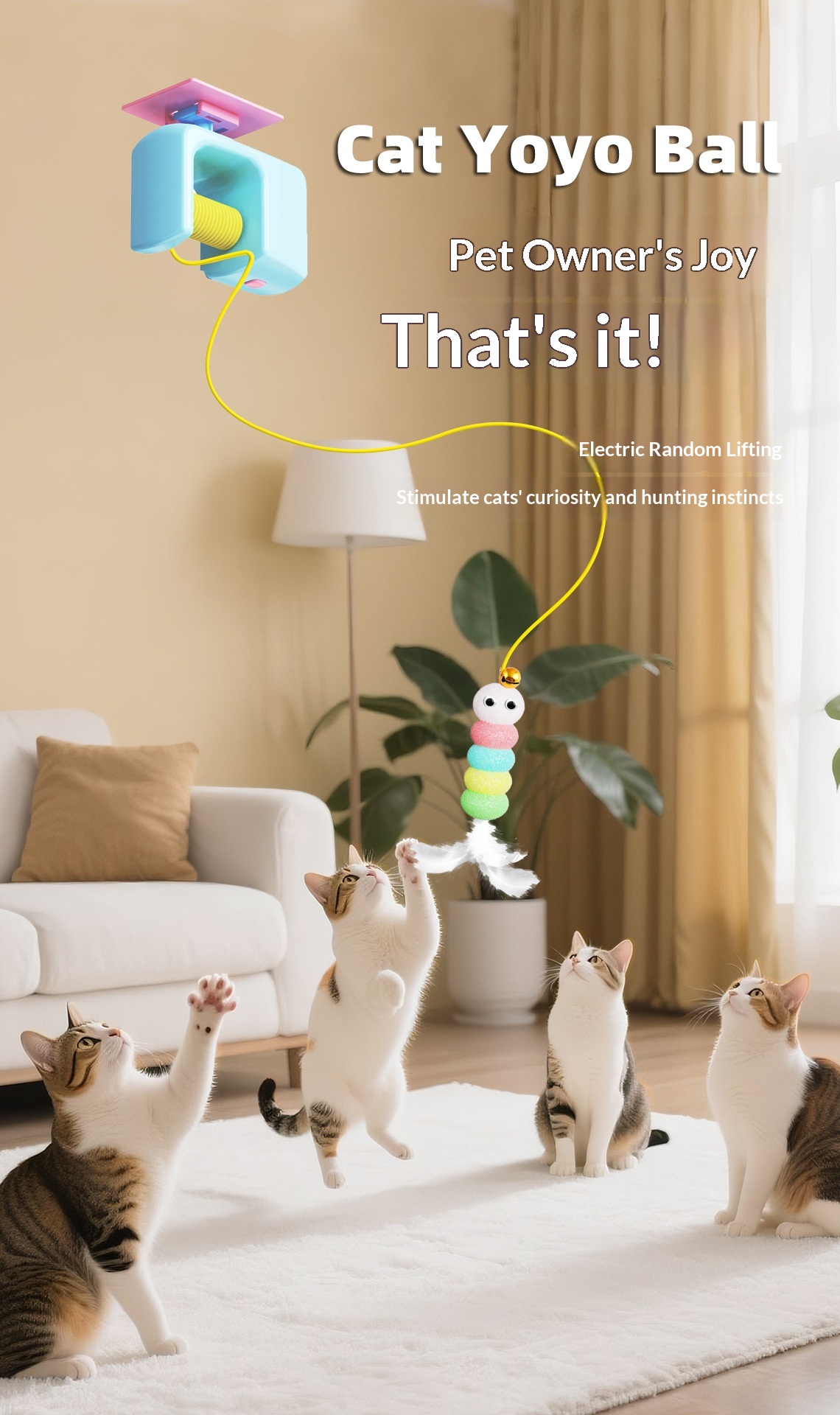 ✅ Adjustable speed & height – gentle for kittens, wild for zoomies